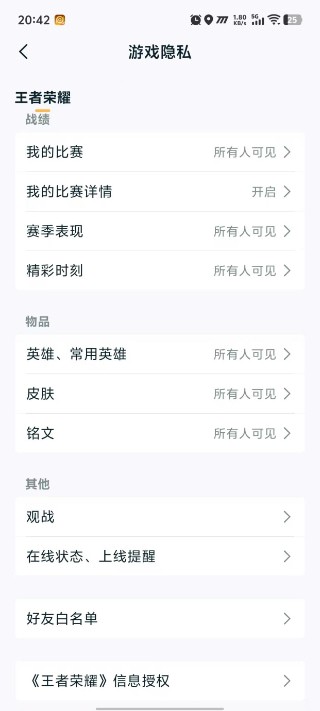 1、其他隐私设置:除了战绩显示,还可关闭“允许观战”“贵族等级显示”“亲密关系显示”等,进一步保护隐私